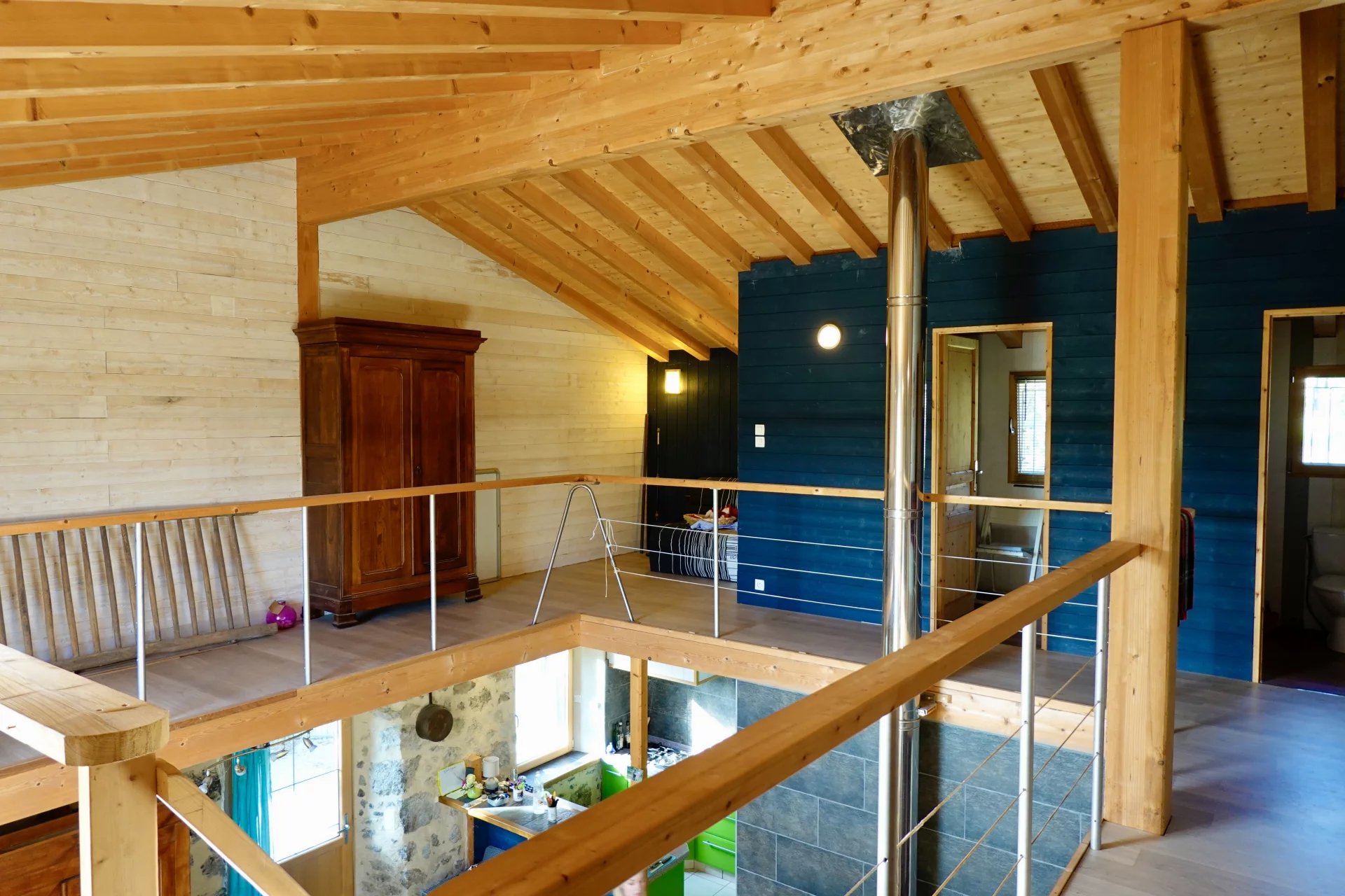 En poussant la porte, vous découvrirez une grande pièce de vie avec cuisine et salon de 34m2. Le rez-de-chaussée se compose également d'une salle d'eau, d'un toilette et d'une chambre de 15m2.